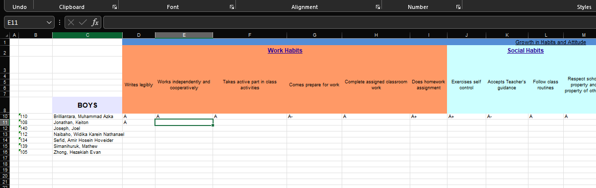 Extract and open the file > Input the letter grade for each habit. After finishing then save the file.