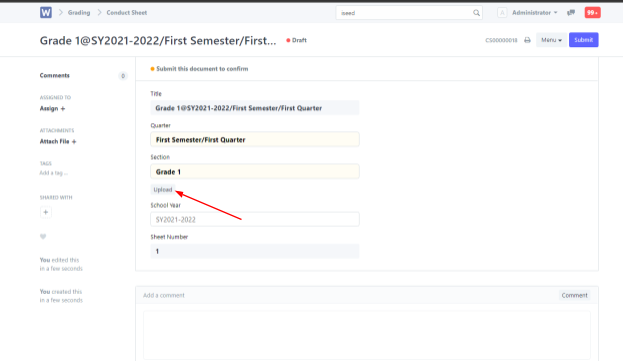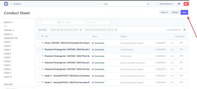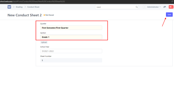 Choose the correct Semester/Quarter and Grade section > Click Save on the top right