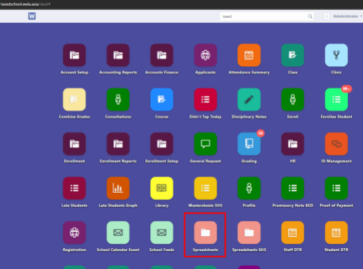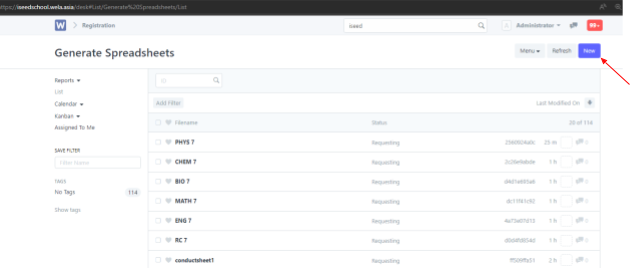 After logging in, request the conduct sheet from the Spreadsheets icon/Generate spread sheet from the search bar