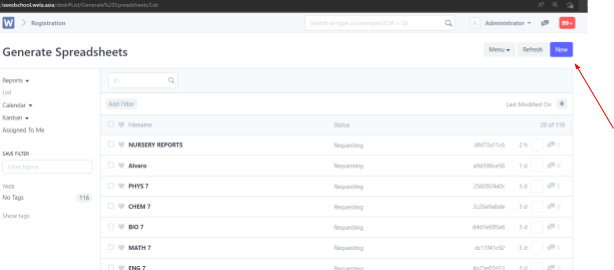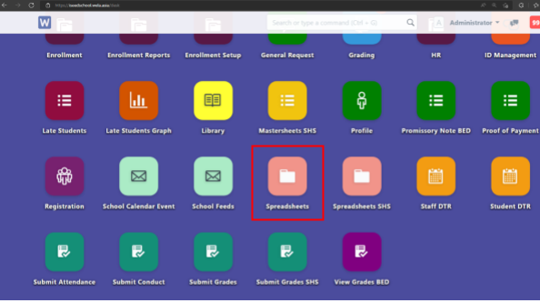 After logging in, click on the Spreadsheets icon to generate spreadsheet.
