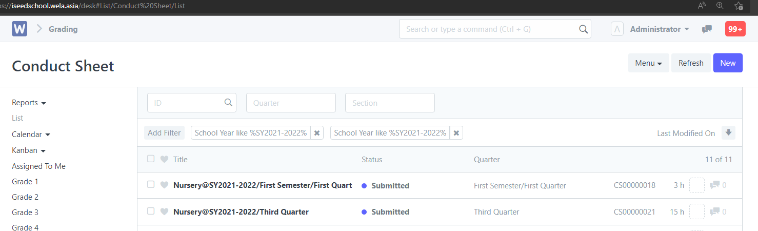 In the Submit conduct page click New on the top right to submit the grades.