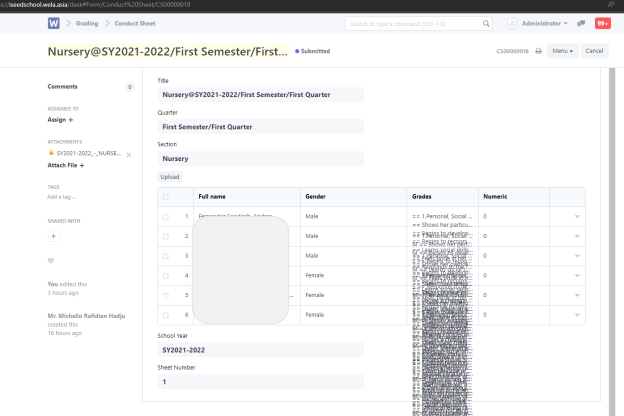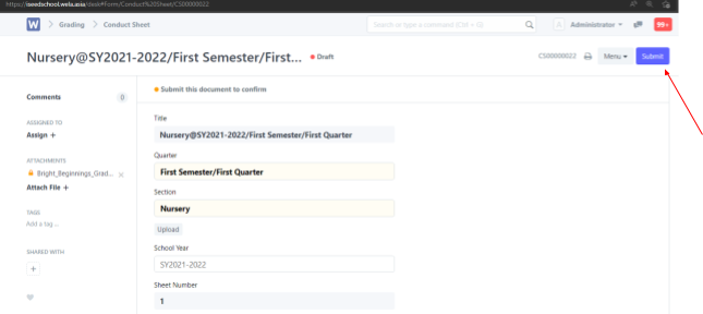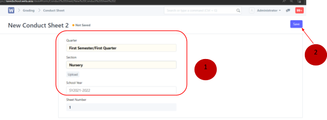 Pick the correct Semester/Quarter [must upload one by one for each semester], choose a Section (Nursery – Preschool) make sure it is the correct school year. Then click save.